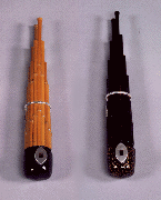 やはり管自体は竹製で、両端に樺巻きを施し、首に赤地錦を張ってあります。指で押さえる孔は全部で7孔です。